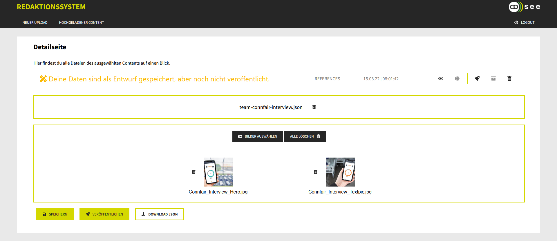 verschiedene Schnittstellen mit der eigentlichen cosee-Webseite kommuniziert. Mit dieser App wird es den Redakteuren